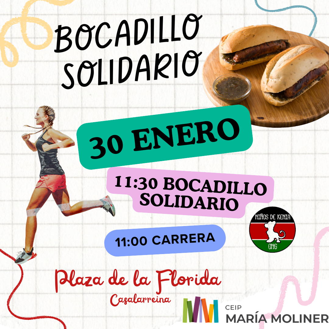 El jueves 30 de enero será la carrera solidaria en la plaza de La Florida y posteriormente el alumnado de sexto repartirán los bocadillos de Halal o Chorizo.