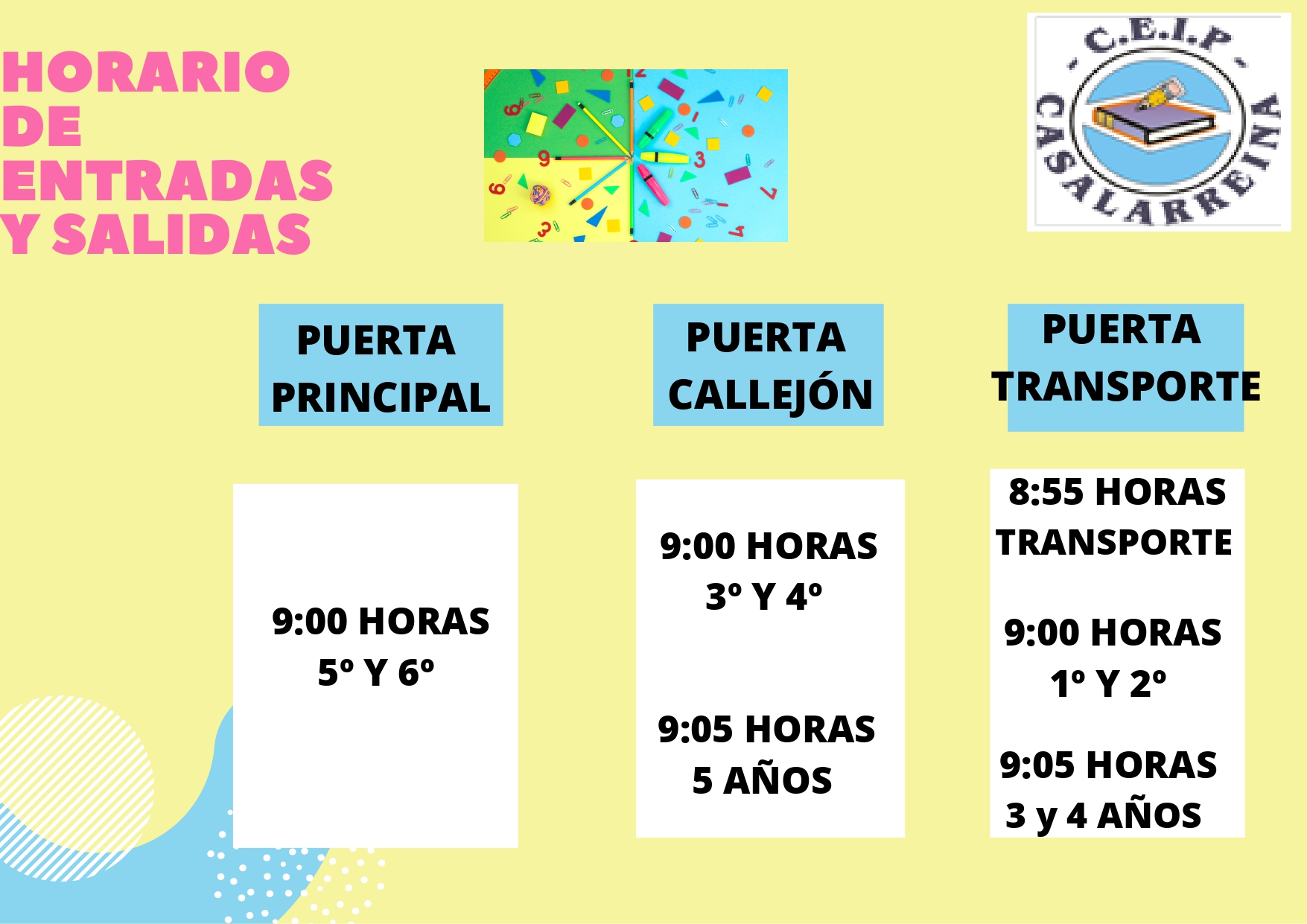 Este año, al igual que el curso pasado, entraremos por las tres puertas de acceso al centro.